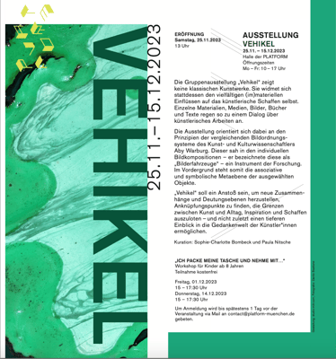 Die Gruppenausstellung „Vehikel“ zeigt keine klassischen Kunstwerke. Sie widmet sich stattdessen den vielfältigen (im)materiellen Einflüssen auf das künstlerische Schaffen selbst. Einzelne Materialien, Medien, Bilder, Bücher und Texte regen so zu einem Dialog über künstlerisches Arbeiten an.