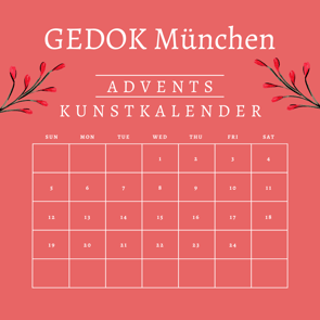 In dieser Reihe präsentieren wir vom 1. bis 24. Dezember täglich das Werk einer GEDOK Künstlerin. Alle Sparten sind vertreten - Bildende Kunst, Angewandte Kunst Musik und Literatur.