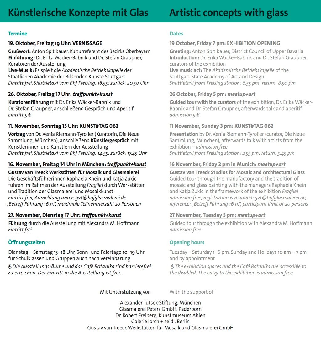 Mit Arbeiten von: Annegret Bleisteiner, Klaus Erika Dietl, Geraldine Frisch, Kira Fritsch, Ute Heim, Annegret Hoch, Marile Holzner, Anneke Marie Huhn, Monika Humm, Jessica Kallage-Götze, Siyoung Kim, Phoebe Lesch, Patricia Lincke, Silke Markefka, Stephanie movall, Stephanie Müller, Carmen Nöhbauer, Daisuke Ogura, Silvia Schreiber, Stefanie Unruh, Nikolai Vogel, Christian Weiss